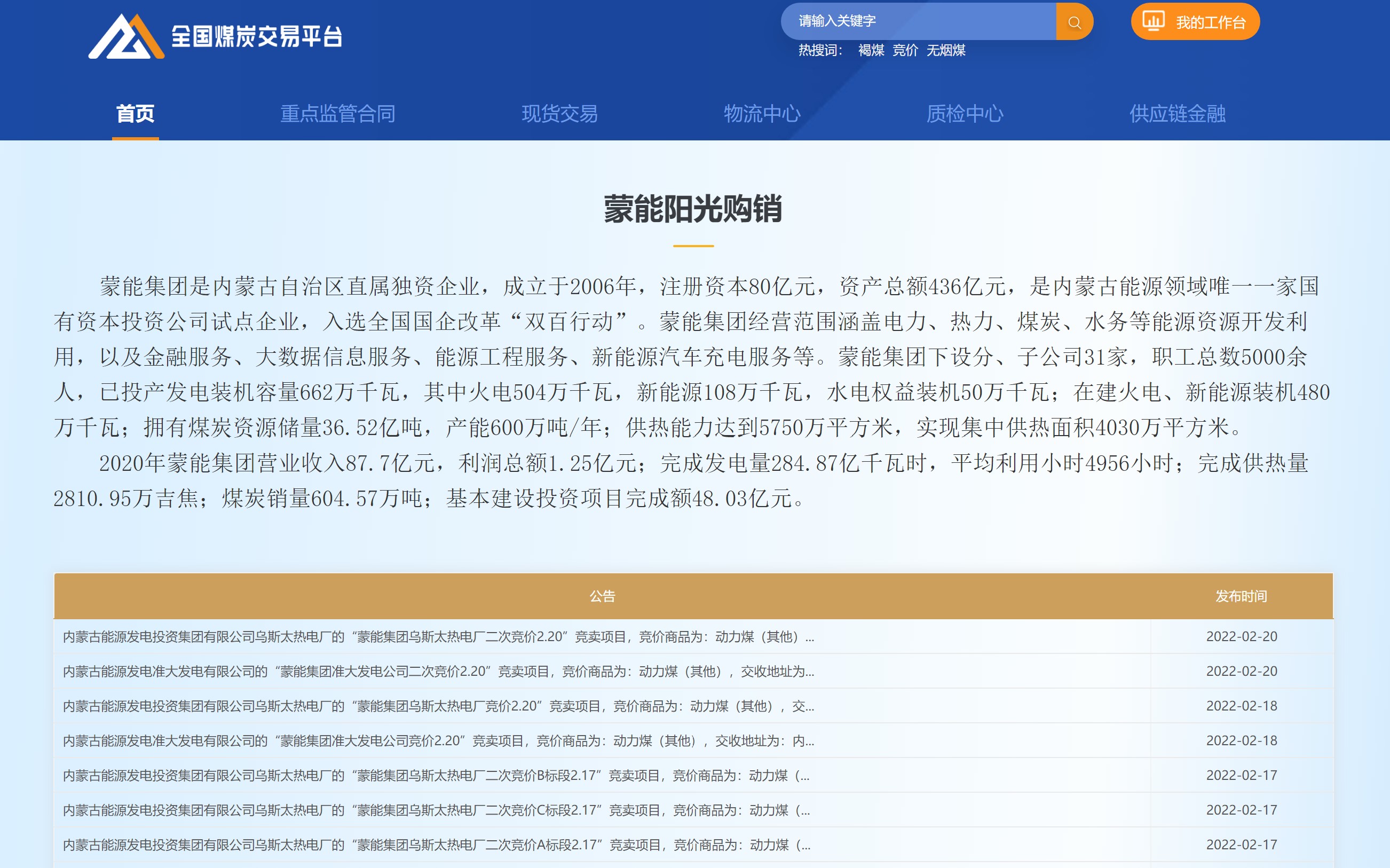 2月17日,蒙能集團(tuán)烏斯太熱電廠在全國(guó)煤炭交易中心“蒙能陽(yáng)光購(gòu)銷專區(qū)”完成了7萬噸 、涉及金額4115萬元的煤炭交易。此舉標(biāo)志著,全國(guó)煤炭交易中心建設(shè)國(guó)家級(jí)煤炭陽(yáng)光購(gòu)銷第三方平臺(tái)相關(guān)工作邁出堅(jiān)實(shí)步伐。