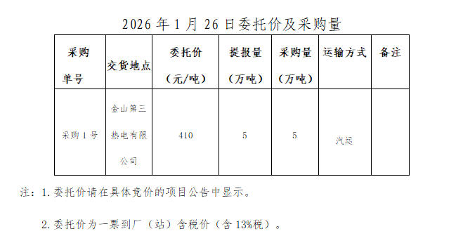 內(nèi)蒙古能源集團(tuán)有限公司計(jì)劃對(duì)所屬內(nèi)蒙古能源集團(tuán)金山第三熱電有限公司2026年1月26日電煤采購(gòu)進(jìn)行電子專場(chǎng)交易,交易信息現(xiàn)對(duì)外公開(kāi)發(fā)布,凡符合條件的交易商均可參加。