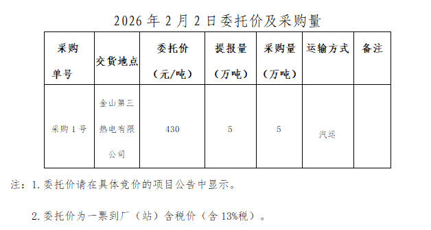 內(nèi)蒙古能源集團(tuán)有限公司計(jì)劃對所屬內(nèi)蒙古能源集團(tuán)金山第三熱電有限公司2026年2月2日電煤采購進(jìn)行電子專場交易,交易信息現(xiàn)對外公開發(fā)布,凡符合條件的交易商均可參加。