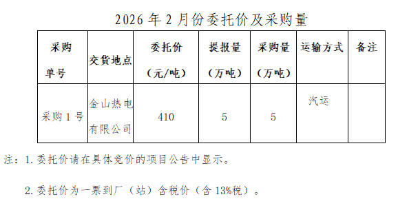 內(nèi)蒙古能源集團(tuán)有限公司計(jì)劃對所屬內(nèi)蒙古能源發(fā)電金山熱電有限公司2026年2月電煤采購進(jìn)行電子專場交易,交易信息現(xiàn)對外公開發(fā)布,凡符合條件的交易商均可參加。