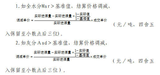 2.如(基準值-100)≤Qnet,ar<基準值,以基準值為基礎,每降低1千卡/千克,結(jié)算價格調(diào)減單卡價格的1.0倍。