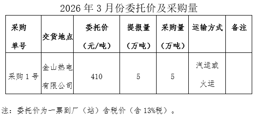 內(nèi)蒙古能源集團(tuán)有限公司計(jì)劃對(duì)所屬內(nèi)蒙古能源發(fā)電金山熱電有限公司2026年3月電煤采購進(jìn)行電子專場(chǎng)交易,交易信息現(xiàn)對(duì)外公開發(fā)布,凡符合條件的交易商均可參加。