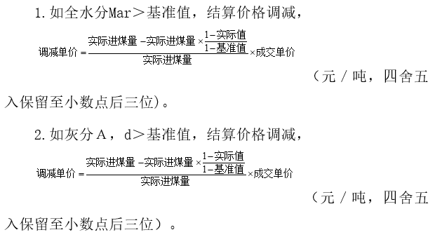 3.如(基準(zhǔn)值+0.2)<St,d≤(基準(zhǔn)值+0.4),以基準(zhǔn)值為基礎(chǔ),每增加0.01個(gè)百分點(diǎn),結(jié)算價(jià)格調(diào)減0.4元/噸。