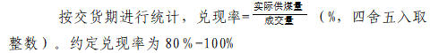 4.扣噸及罰沒噸數(shù)不參與兌現(xiàn)率計算,質量指標也不參與月度或供貨期加權平均計算。