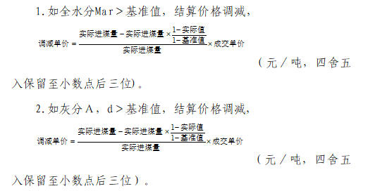 2.如(基準(zhǔn)值)<St,d≤(基準(zhǔn)值+0.2),以基準(zhǔn)值為基礎(chǔ),每增加0.01個(gè)百分點(diǎn),結(jié)算價(jià)格調(diào)減0.2元/噸。