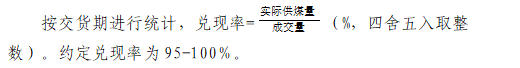 (一)銷方因自身原因?qū)е聝冬F(xiàn)率低于95%,除按質(zhì)量考核條款考核外,還將進(jìn)行兌現(xiàn)率考核,考核金額=成交量×(95%-兌現(xiàn)率)×成交價(jià)×5%,從保證金中扣除。