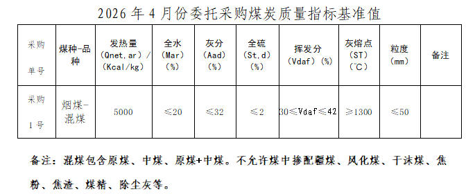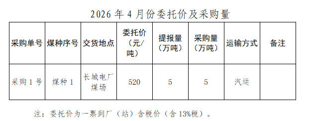 內蒙古能源集團有限公司計劃對所屬長城發(fā)電有限公司2026年4月市場煤采購進行電子專場交易,交易信息現對外公開發(fā)布,凡符合條件的交易商均可參加。