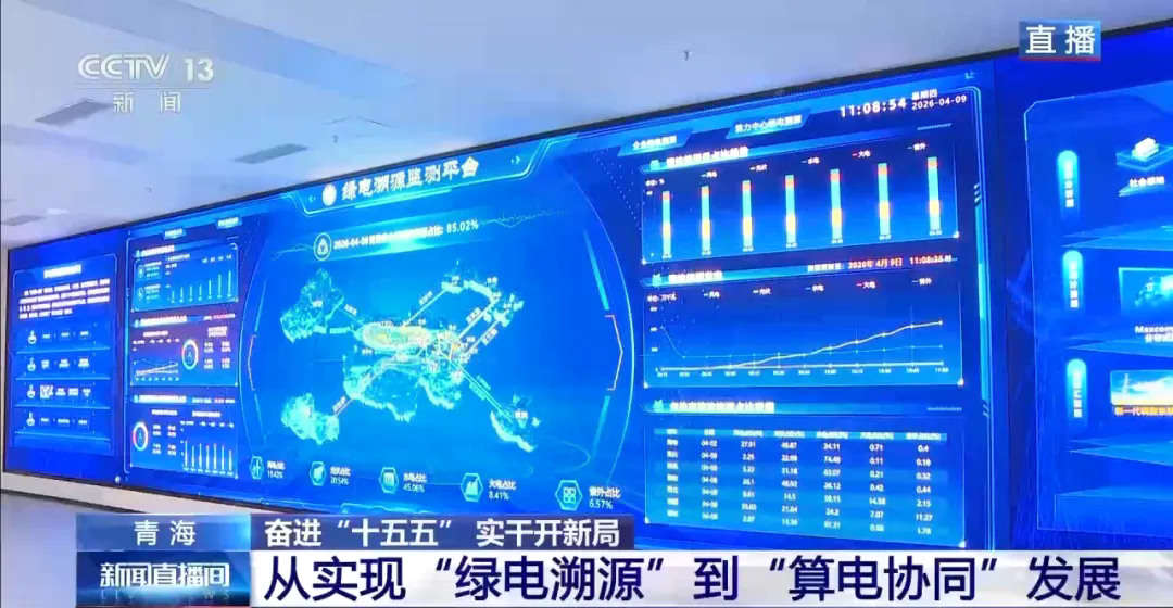 總臺(tái)記者 王小龍:在青海省清潔能源和綠色算力調(diào)度中心的大屏上,顯示著全省清潔能源當(dāng)天的發(fā)電量占比和發(fā)電量年度趨勢(shì)。